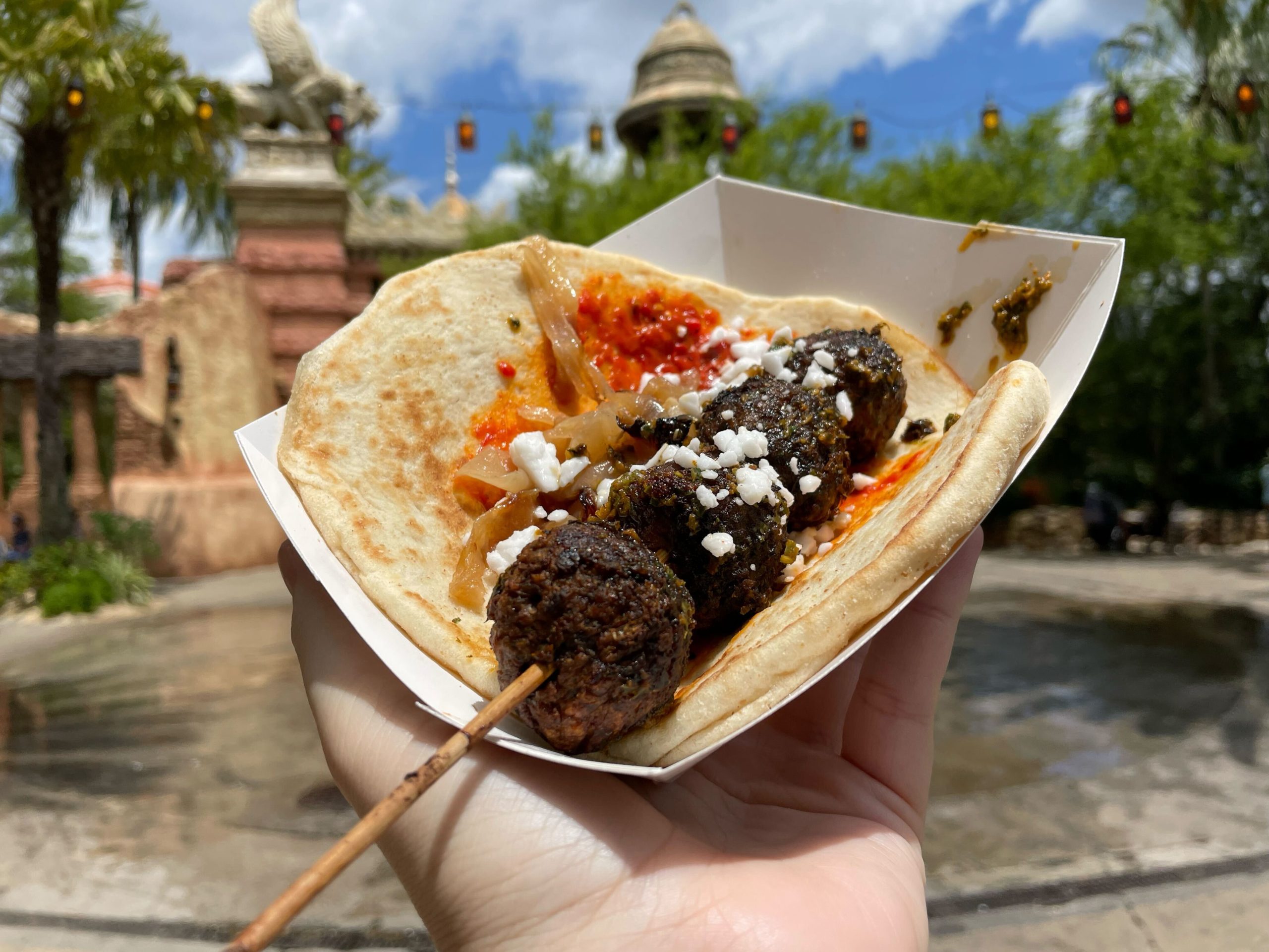 REVIEW: Vegan Meatball Kebab is a Satisfying and Spicy New Addition to Doc Sugrue’s Kebab House in the Lost Continent at Islands of Adventure