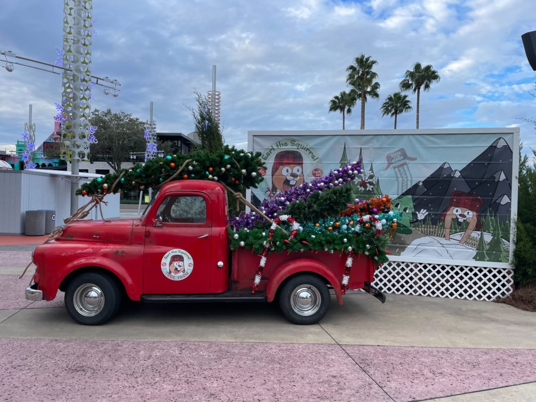 Mistletoe Pines Sign and Earl the Squirrel Truck Arrive at Universal CityWalk Orlando
