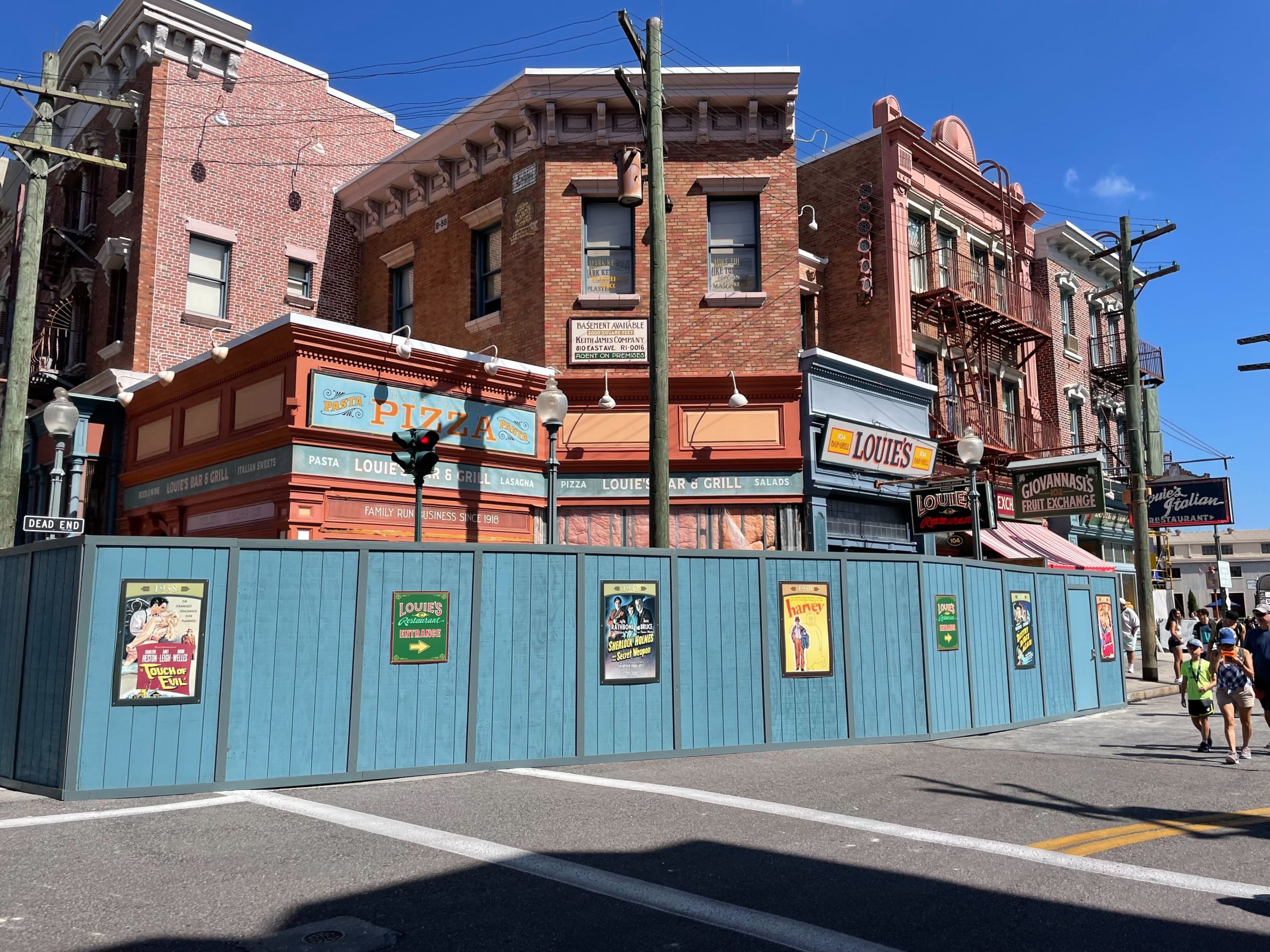 Louie’s Surrounded by Construction Walls, Guido’s Gelato Closed for Refurbishment at Universal Studios Florida