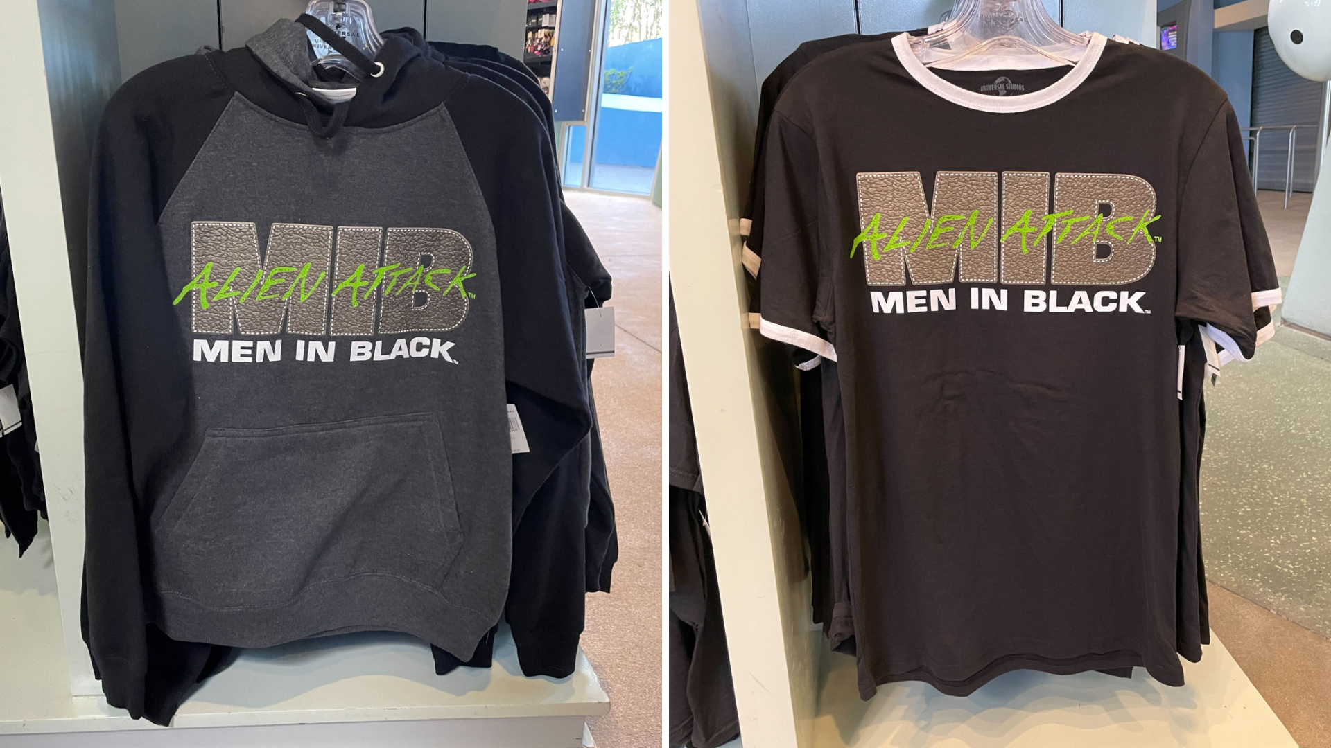 Attention, Galaxy Defenders! A new hooded sweatshirt and tee for MEN IN BLACK Alien Attack are available at Universal Studios ...