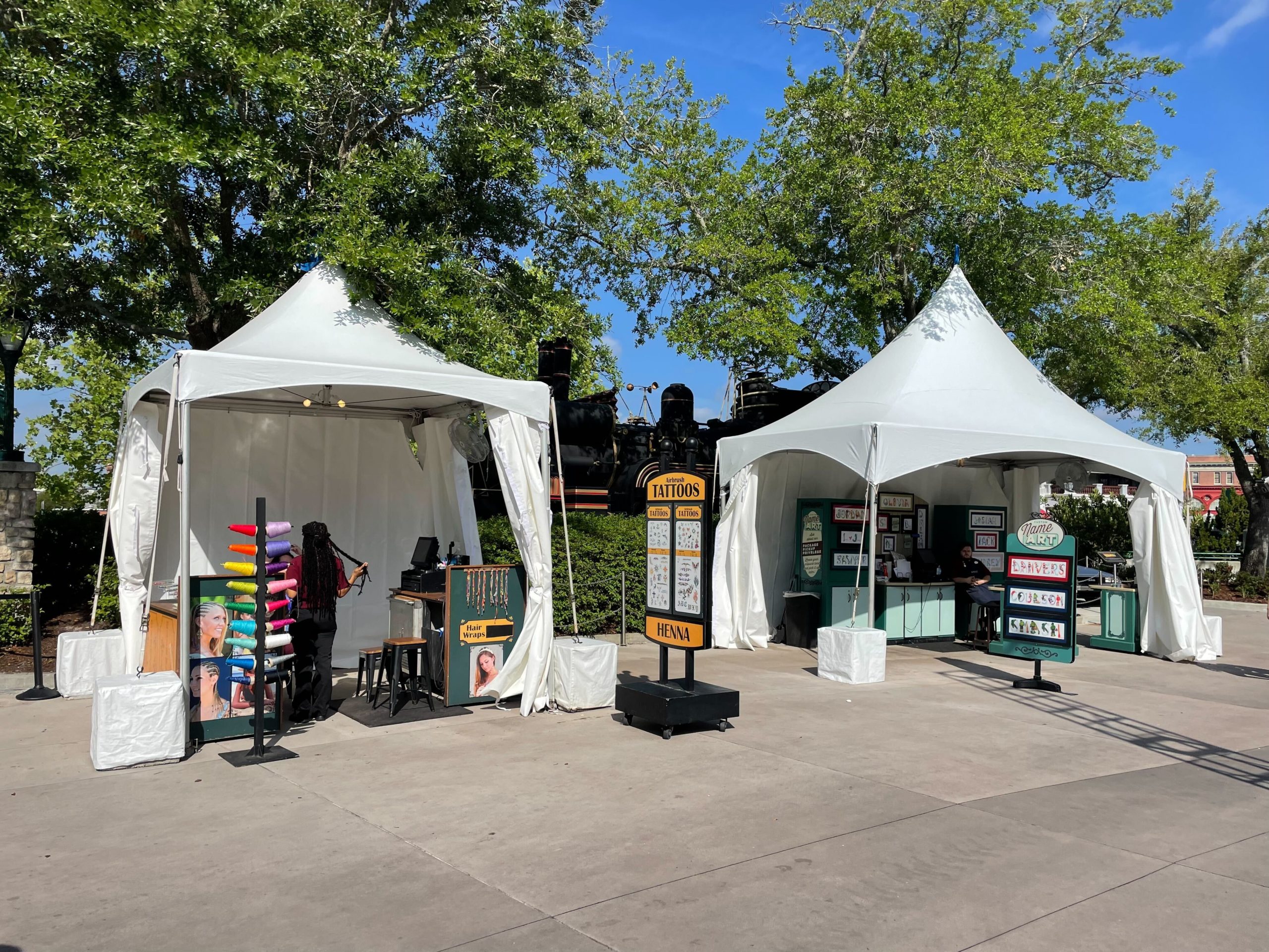 The name art, hair braiding, and caricature art kiosks have been moved to temporary tents while concrete work is completed ...