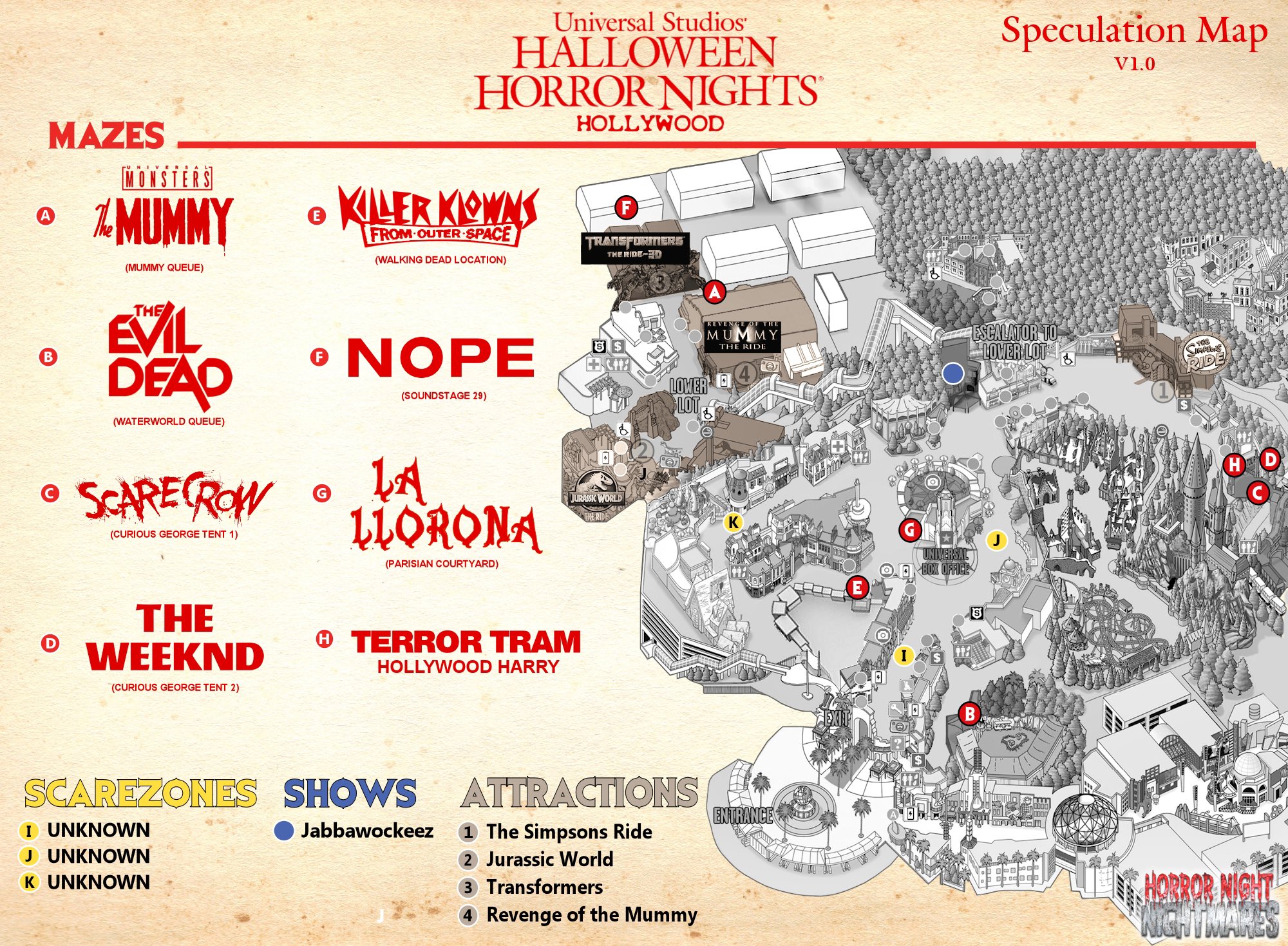 Horror Night Nightmares has released their speculation map for Halloween Horror Nights at Universal Studios Hollywood. This map is based ...