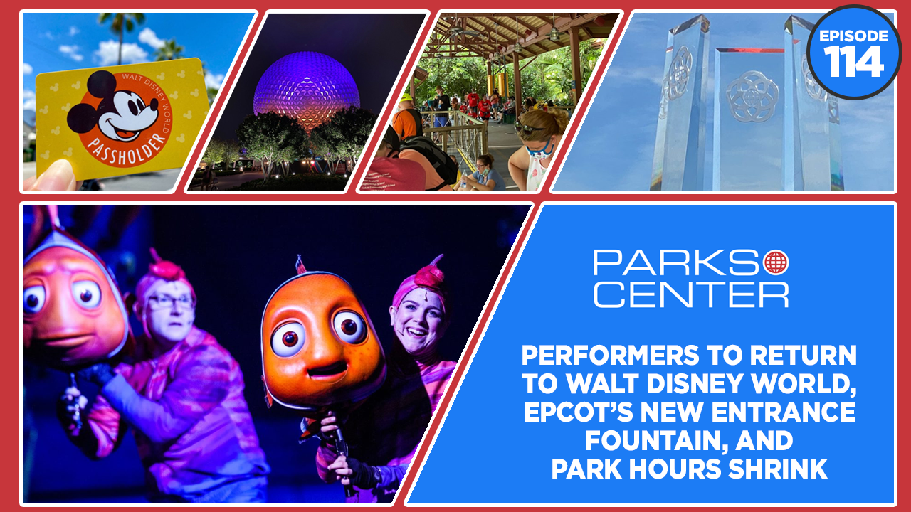 ParksCenter – Performers To Return To Walt Disney World, EPCOT’s New Entrance Fountain, and Park Hours Shrink – Ep. 114
