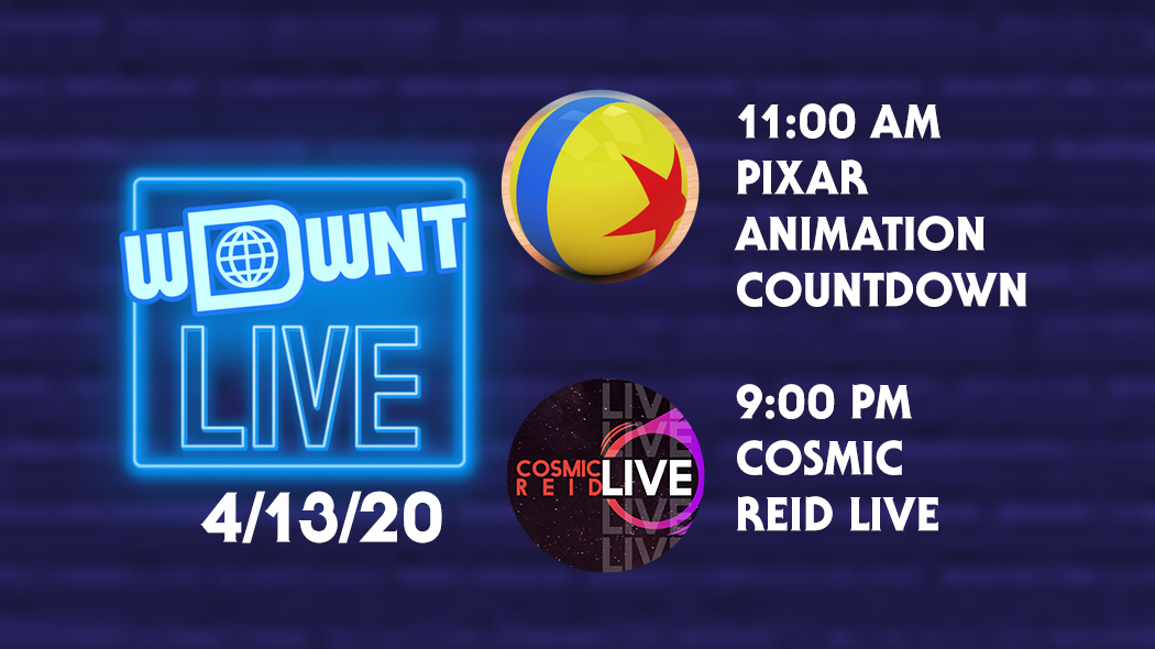 TODAY on WDWNT LIVE: Join Tom for an Epic Pixar Animation Countdown at 11:00 AM, Plus an Evening of Disney Music with DJ Cosmic Reid!