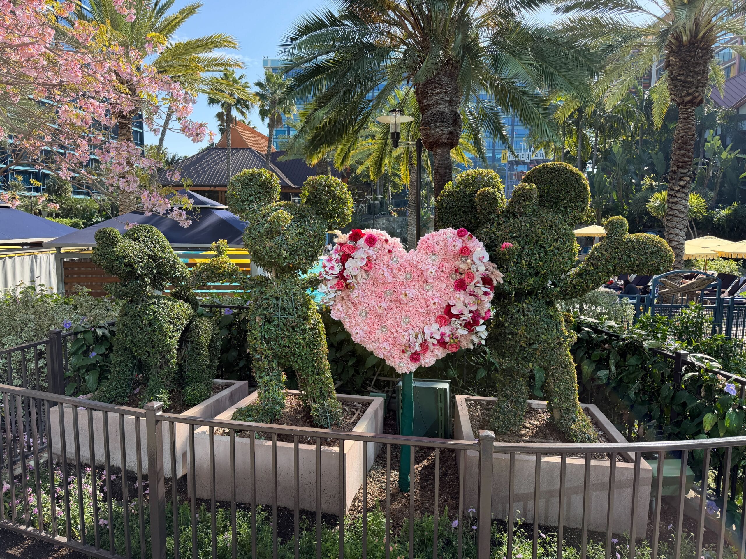 Disneyland Hotel is ready for Valentine’s Day this Saturday with a special topiary and limited-time …