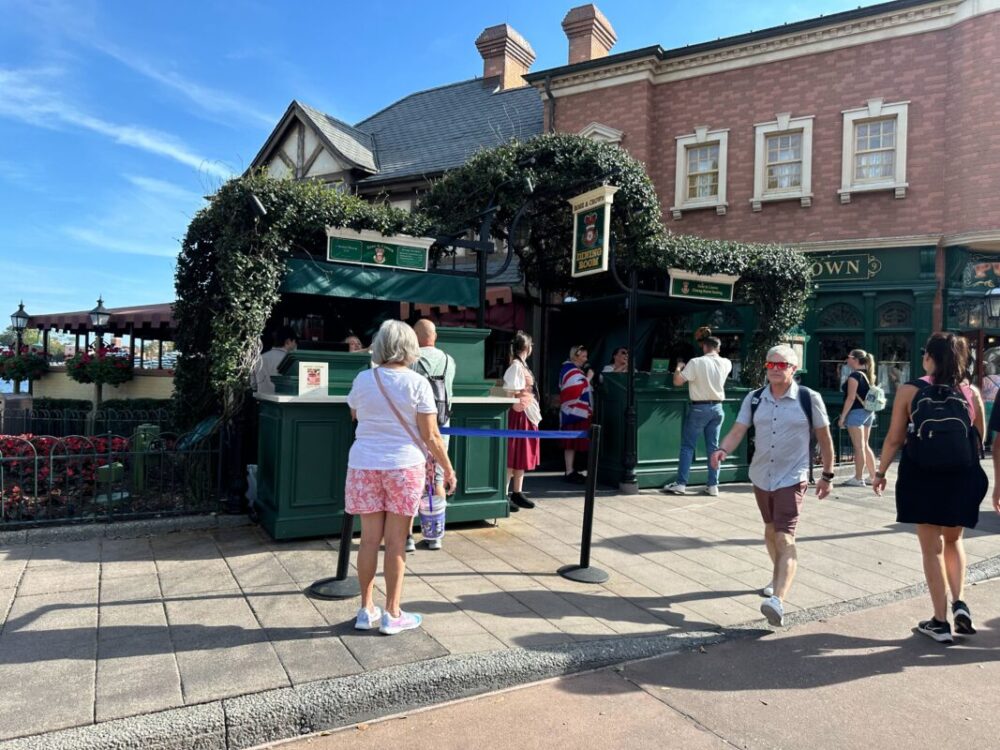 The United Kingdom Beer Cart is located just to the left of the entrance for the Rose & Crown Pub & Dining Room in the United Kingdom Pavilion. You can find it at number 19 on the map below.