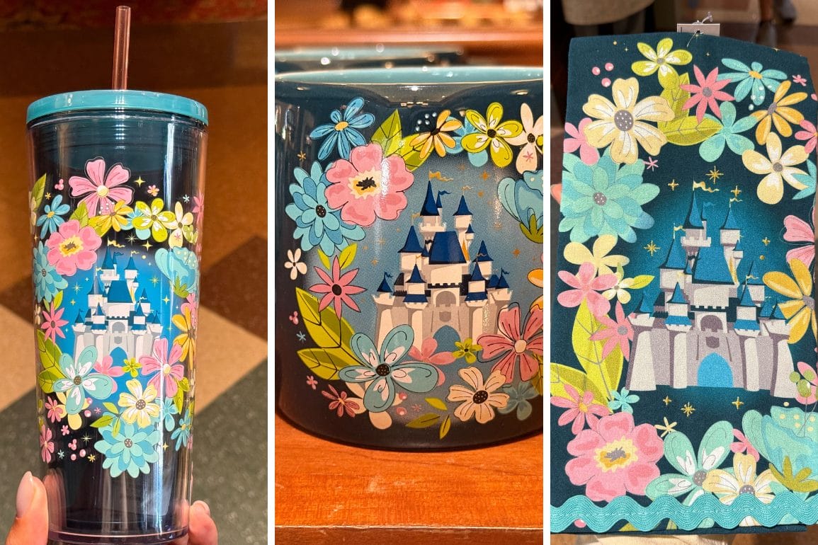 Spring is coming a little early at Disneyland Resort. A new collection featuring a Fantasyland castle surrounded by pastel flowers has arrived. Floral Castle Tumbler – $24.99 This dark turquoise plastic tumbler features a vibrant Fantasyland castle surrounded by pastel pink, blue, yellow, and green florals. There are a few pink hidden Mickeys in the … Read more