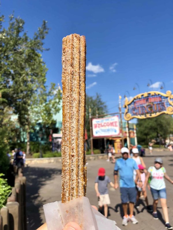 Mixing the savory and the sweet, this pretzel carried an excellent taste as the salt and marshmallow cream swirled together. We don’t get enough sugary pretzel variations at the parks. As for function, this usually shareable baked good became a sticky mess. As in “need a towelette” sticky. An attempt at cleanup left bits of paper napkin grafted onto this reviewer’s hand thanks to the marshmallow.