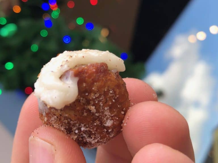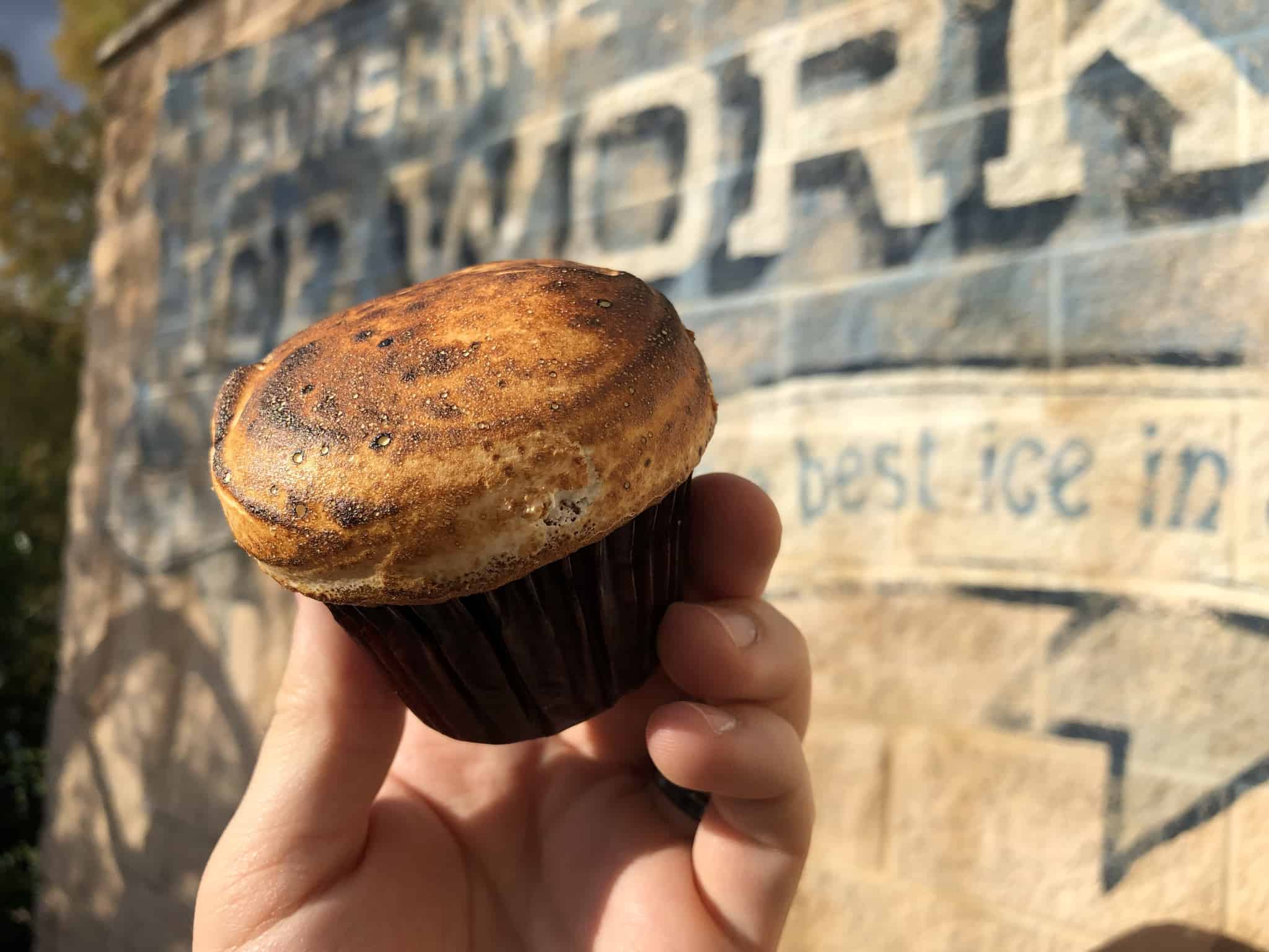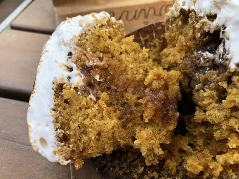 Mixing the savory and the sweet, this pretzel carried an excellent taste as the salt and marshmallow cream swirled together. We don’t get enough sugary pretzel variations at the parks. As for function, this usually shareable baked good became a sticky mess. As in “need a towelette” sticky. An attempt at cleanup left bits of paper napkin grafted onto this reviewer’s hand thanks to the marshmallow.