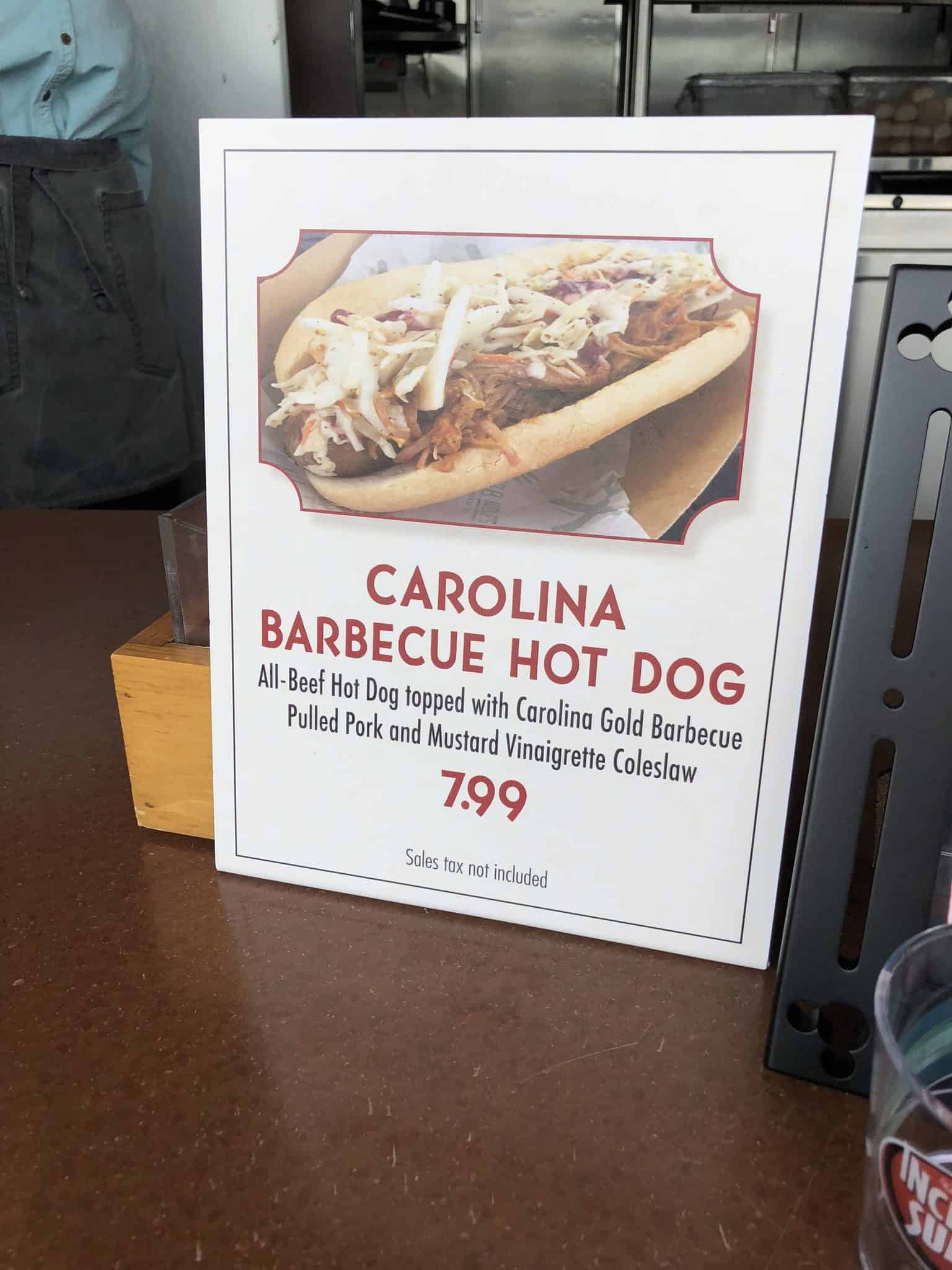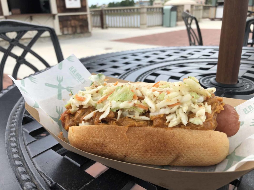 The Big Bad Wolf seems to have found a new way to cook up his long time nemeses with the new Carolina BBQ Hot Dog at the B.B. Wolf’s Sausage Company at Disney Springs. This version of the eatery’s all-beef hot dog is topped with Carolina Gold Barbecue, its sauce a mustard type popular in South Carolina and based in Bavarian tradition, along with a mustard vinaigrette coleslaw.