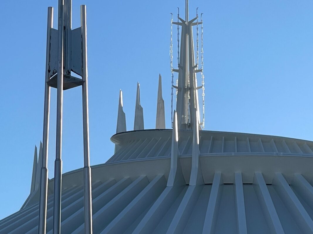 The scaffolding around the Space Mountain rooftop spires have now all been removed as the opening of TRON Lightcycle / Run nears on April 4. Disney has been cleaning the Space Mountain roof exterior since January as they complete the construction for TRON Lightcycle / Run and its surrounding area. We have been following along with the refurbishment while keeping you updated on the changes made to the surrounding area.