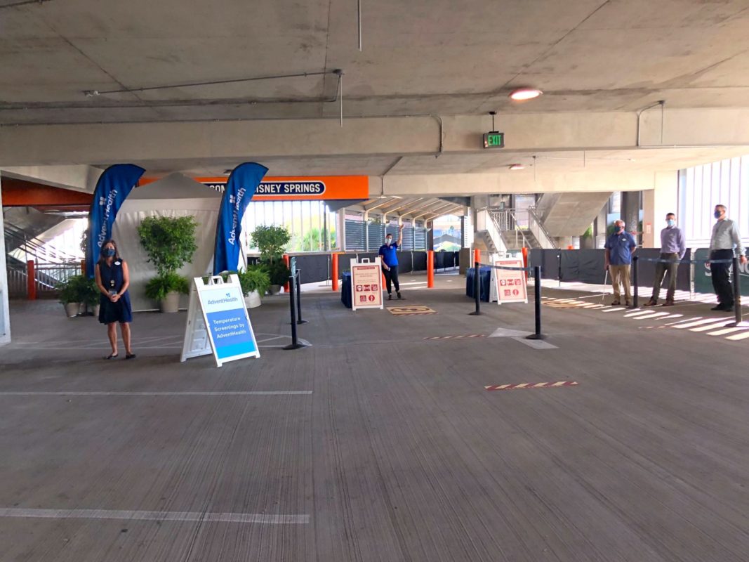 PHOTOS, VIDEO: First Look at New COVID-19 Warnings, Temperature Screenings, and Entrance Procedures at Parking Garages in Disney Springs