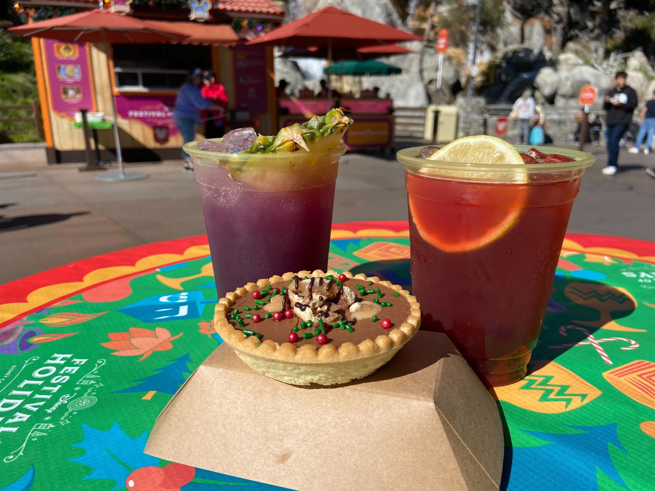 REVIEW: NEW Visions of Sugarplums Marketplace Debuts With Bourbon-Chocolate Tart and Drinks at the 2022 Festival of Holidays in Disney California Adventure