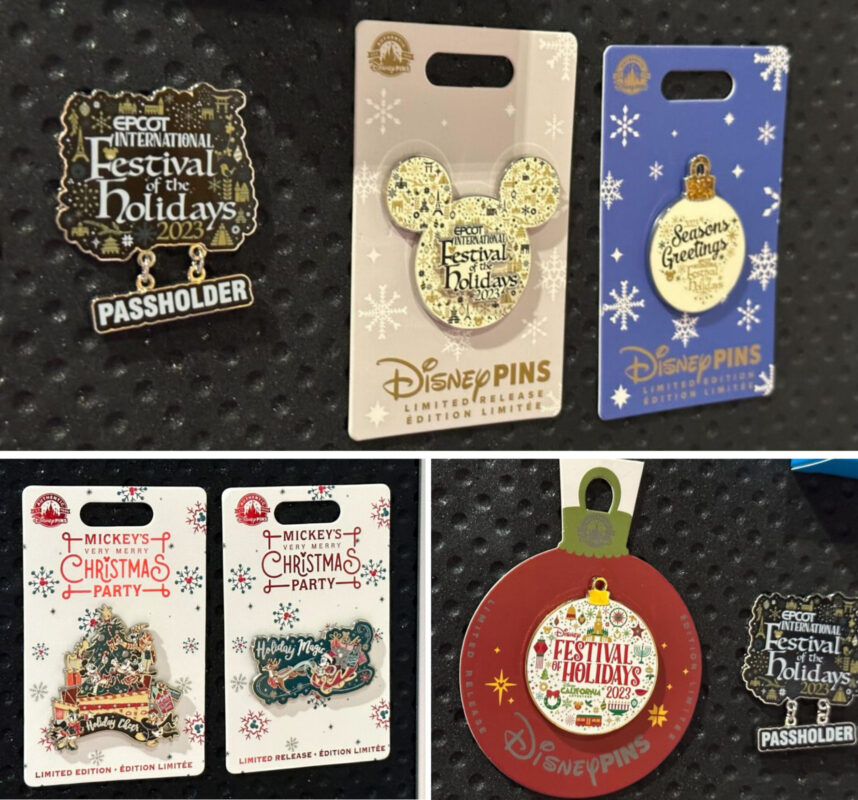 FIRST LOOK: Mickey’s Very Merry Christmas Party & Festival of the Holidays 2023 Pins Revealed for Walt Disney World & Disneyland Resort