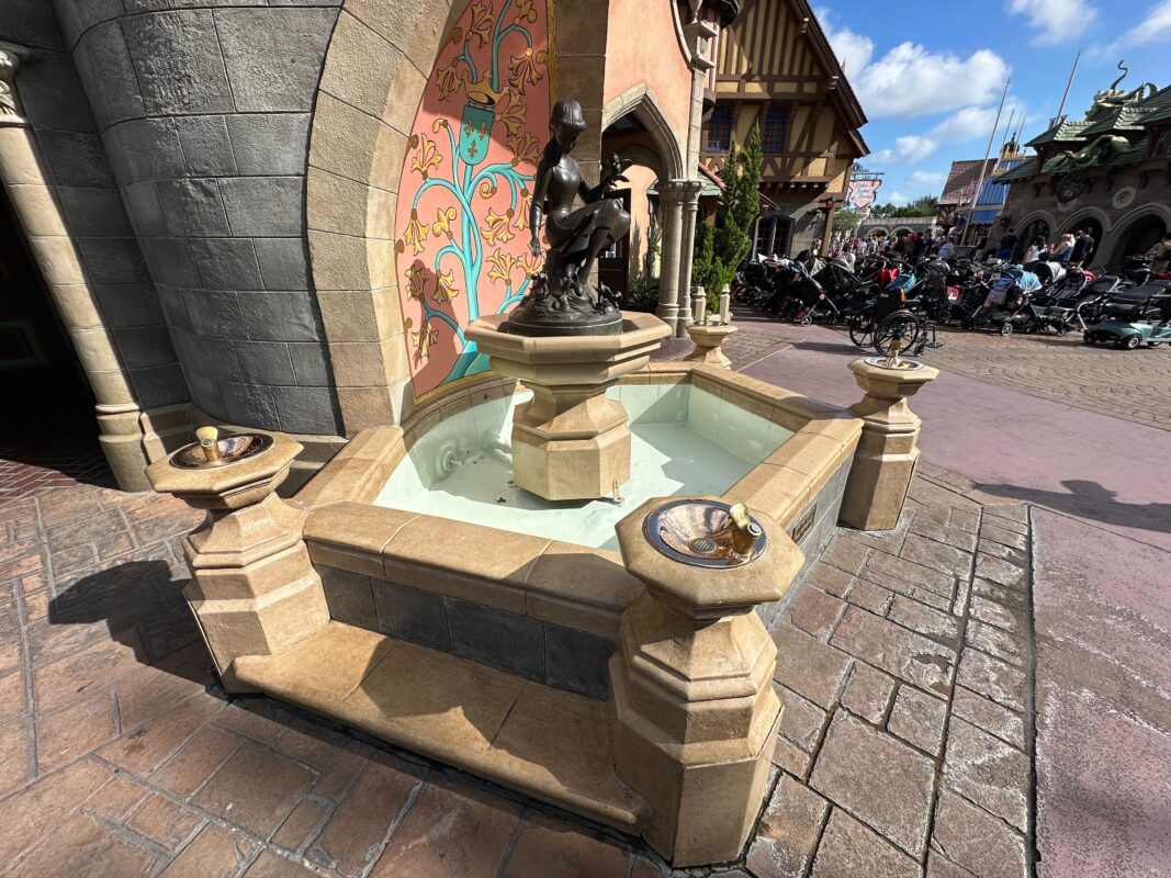 PHOTOS: Cinderella Fountain in Magic Kingdom Finally Repaired and Repainted, Remains Drained