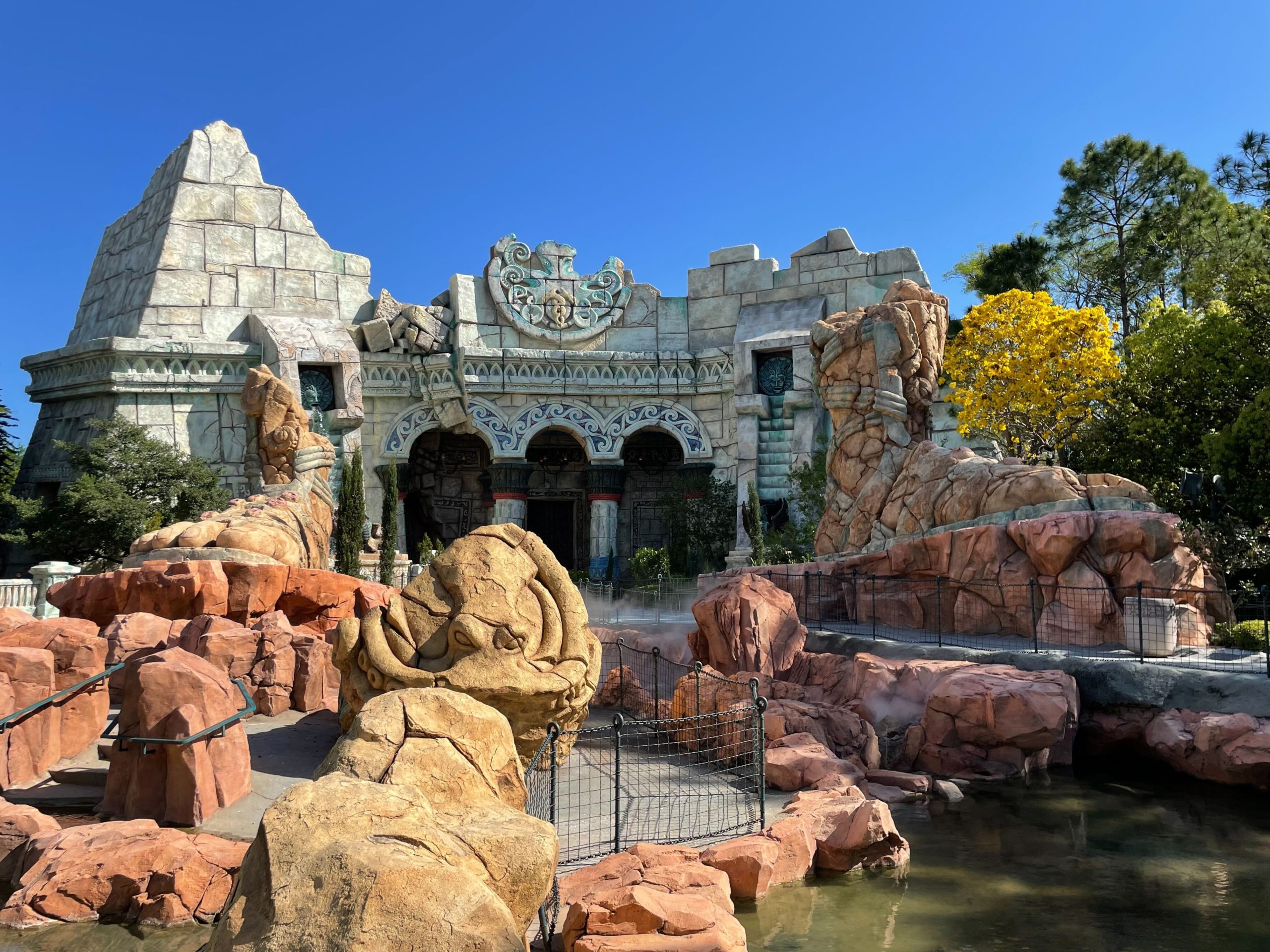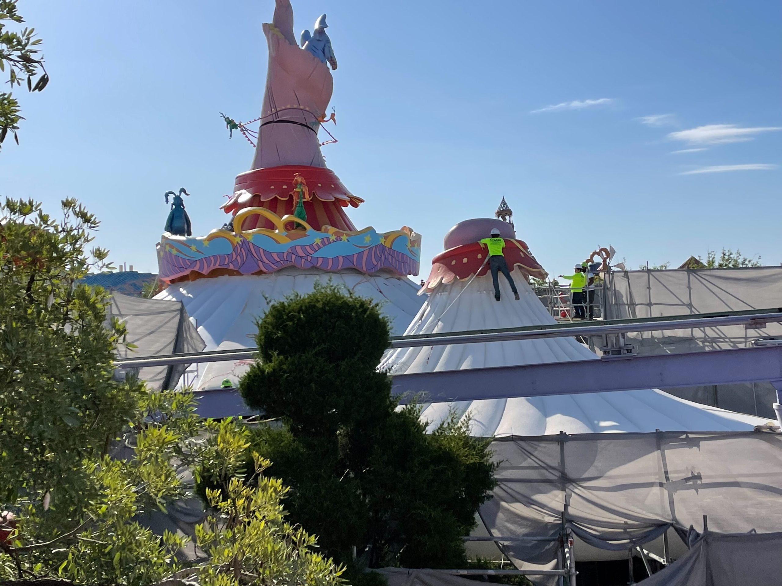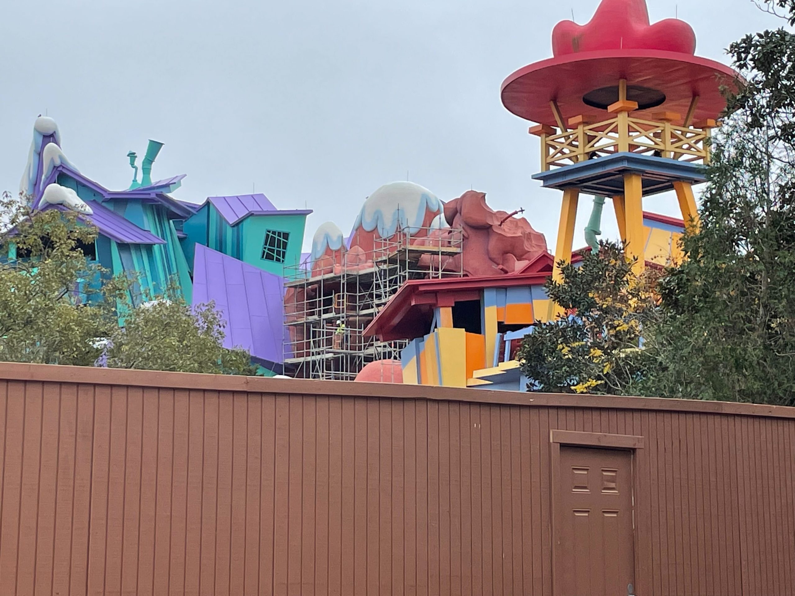 Caro-Seuss-el in Seuss Landing at Universal’s Islands of Adventure abruptly closed last summer and has remained closed for refurbishment. The attraction remains surrounded by pink construction walls and grey scrim. Nearby, construction walls also surround the “If I Ran the Zoo” playground. From the ground, we could see some crew members working on the roof … Read more