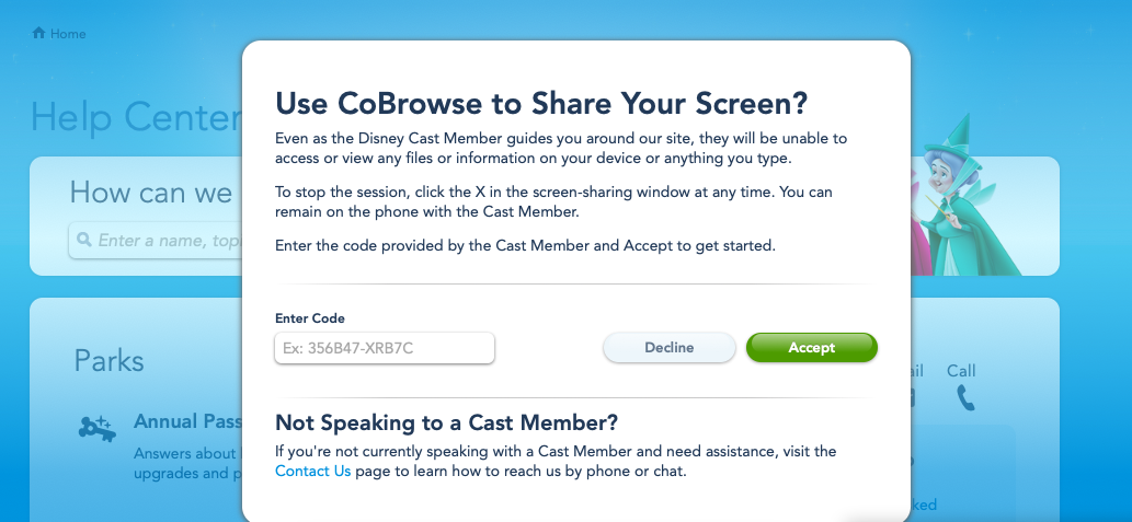 Walt Disney World Website Offering New CoBrowse Screen Sharing Technology to Improve Guest Service